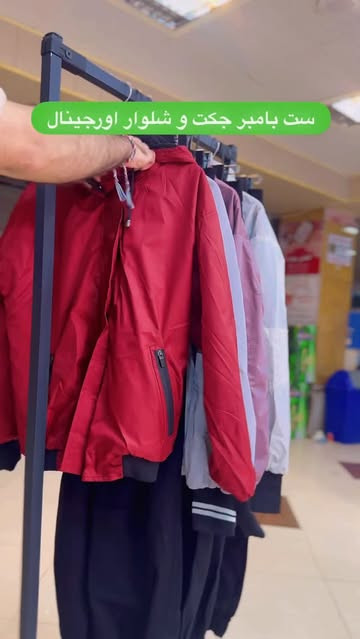 ست بامبرجکت زیپدار دورو با یک روی بارانی رنگبندی و روی دیگر بامبرجکت مشکی برند بر/شکا. بامبر یقه ایستاده کلاه زیپدار، شلوار مدل اسلش مشکی که براحتی با پوتین ست میشود.